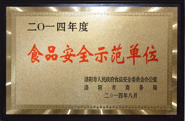 2014年9月3日下午,洛阳市召开创建食品安全示范单位现场推进会,洛阳市政府领导、相关委局负责人及食品安全示范单位申报企业参加了推进会,会上授予安博网页版登录入口“食品安全示范单位”。
