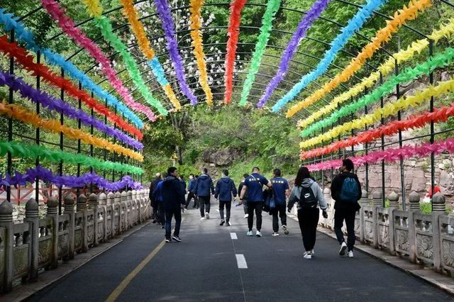 风恬日暖赏春景、洛大生品结一心!为了增强团队凝聚力,更好的实现公司的经营目标,2021年4月26日,洛阳正大生品销售团队正式集结,为期两天的户外团建如期举行;为鼓舞团队士气,资 深总裁王学斌先生、副总裁沈道华先生、市场部总监安民先生、人力资源总监金玲女士也亲临现场,参与到此次拓展当中。4月26日上午九点,团建队伍到达龙潭大峡谷,以轻松惬意的方式游览景区、舒缓心情,真正让大家摆脱工作压力,欣赏美景、寄情山水。
